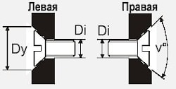 Для выполнения резьбового отверстия под винт с головкой заподлицо указывается диаметр ножки винта и угол зенковки или тип резьбы, а также с какой стороны нужно выполнить зенковку.