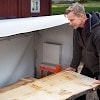 Сухой и холодный наружный воздух смешивается с нагретым влажным воздухом в сушильном устройстве сауны, прежде чем попасть в древесину в камере.