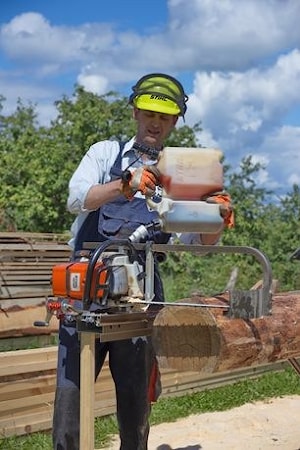 В стандартной комплектации есть все, что нужно для пиления, однако каждый компонент может быть заказан отдельно. У нас есть цепные пилы, пильные шины и цепи, которые подходят для пилки бревен, но Вы можете также использовать стандартное оборудование, если в Вашем распоряжении имеется цепная пила с двумя крепежными болтами. Испытываешь непередаваемое ощущение, когда держишь в руках свою первую распиленную доску!